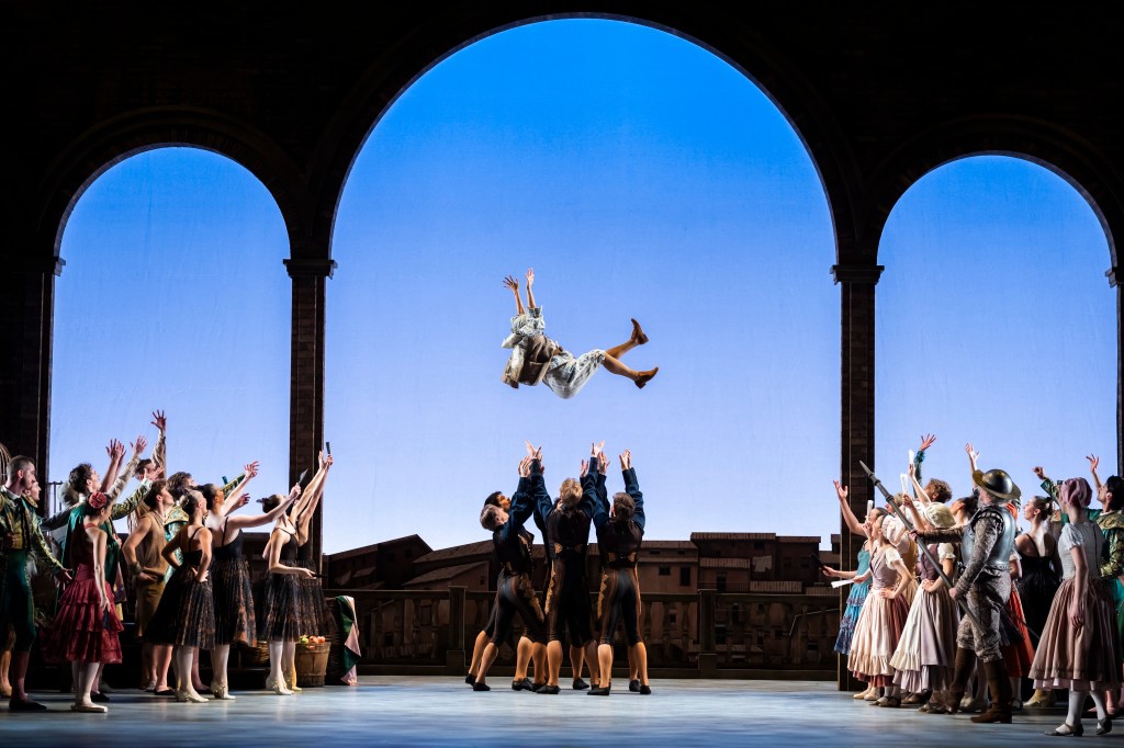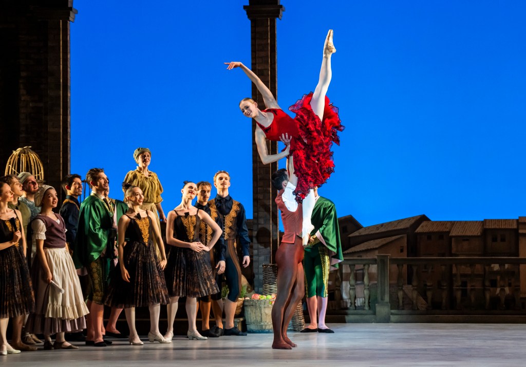 Of course, there must be a barrier to Kitri and Basilio’s love. Her father, Lorenzo (Rory Mackay), disapproves of the relationship as he wishes Kitri to marry a rich nobleman, Gamache (Jonathan Payn), and not a poor barber like Basilio! After Basilio fakes his death (and comes back to life!), her father gives the couple his blessing, and celebrations begin.