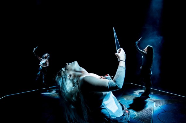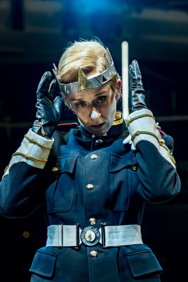 That’s right, hang on to your coronets… Shakespeare’s titular character is played by a FEMALE. And what a woman she is! Dressed in combats, shaven-headed and brandishing assorted weaponry, Lucy Ellinson’s Macbeth is decorated for her valour; gripped by murderous ambition; and then strung up for her sins.