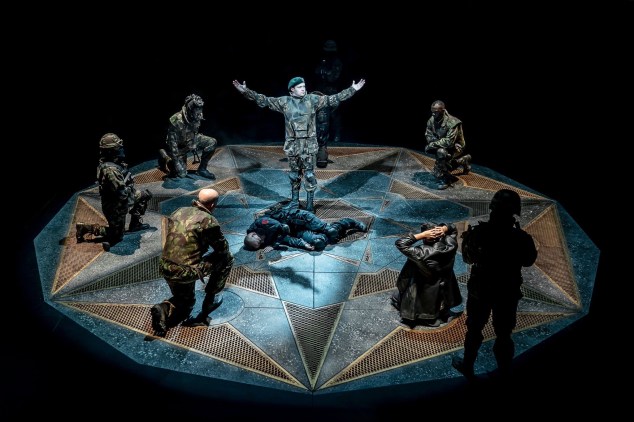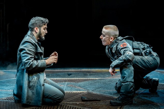 Here, a special mention also to Designer Oli Townsend, Lighting Designer Colin Grenfell and Sound Designer Elena Pena, who infuse the whole production with a post-modern, industrial and militaristic feel.